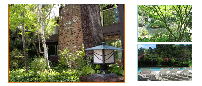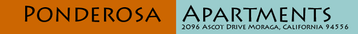 The Ponderosa is a vintage 1950's apartment complex in a lush courtyard garden setting. The temperate climate of Moraga, is the perfect place for residents to enjoy the private solar heated pool that is located in a sunny corner of the grounds. The spacious apartments have been tastefully updated and maintained and most include brick wood burning fireplaces. Covered parking with storage is also included. The Ponderosa offers convenience to the greater bay area and has its own excellent educational and recreational opportunities nearby. Shopping, restaurants and the famed Rheem movie theatre are within walking distance. |